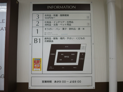 新京極通の玄関から入るとすぐにあるのは階段。 1フロアが狭いこともあって 地階・1階どちらも食品売場です。 地階に行く途中にこんなポスターがありました。 どうやら業務用エレベーターがあるようです。 |