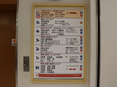 エスカレーターは日立製。 エレベーターもやはり日立製でした。 エレベーターは入口より 奥行きがあってかなり広めな感じ。 最上階にはファミールもあって いかにもデパートな感じのイトーヨーカドーでした。 |